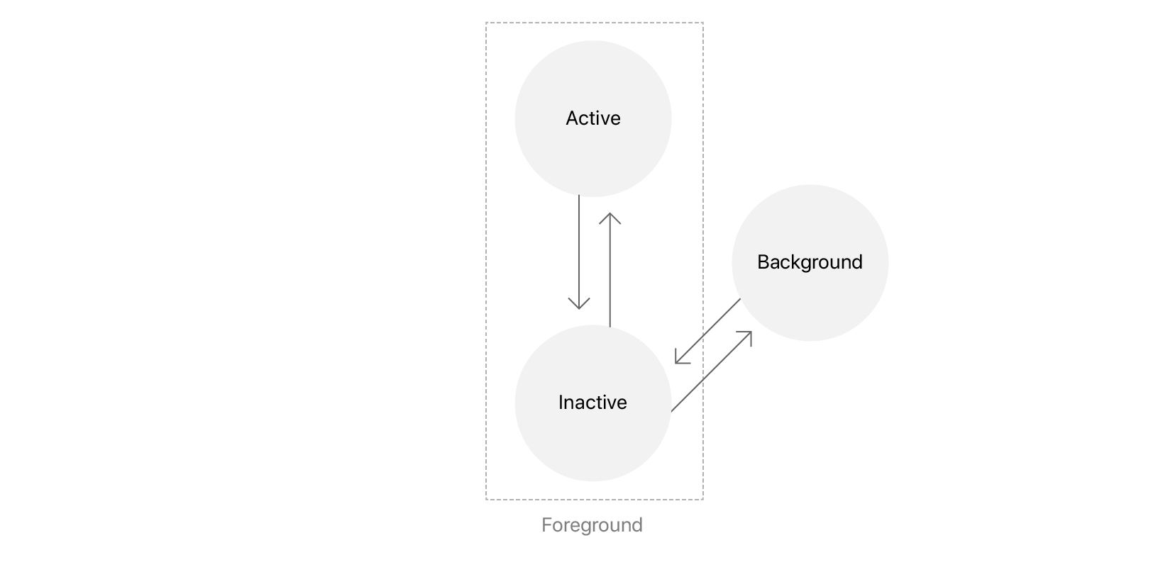 - background - 앱이 실행중이지만 UI속 scene이 보이지 않는다. 앱 종료 전에 Scene이 이 단계로 들어간다.