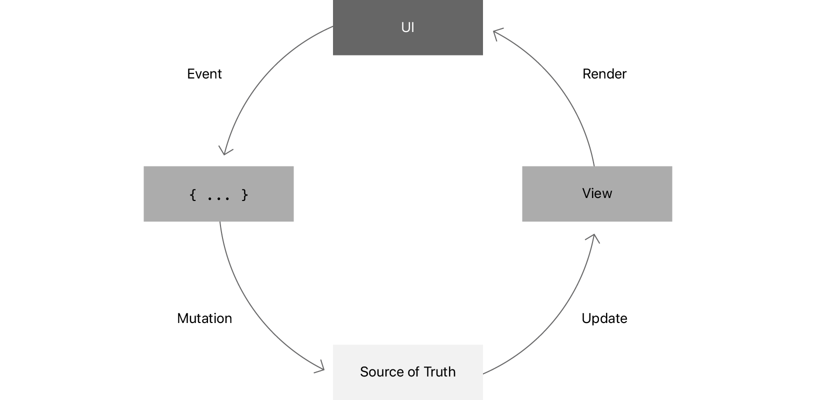 사용자 상호 작용 또는 알림 같은 이벤트는 앱이 응답한다. 사건에 대한 응답으로 closure가 실행된다. 이것은 진실 소스의 변화의 결과를 초래할 수 있다. 변화를 관찰한 후에 SwiftUI는 view를 업데이트하고 UI를 렌더링한다.