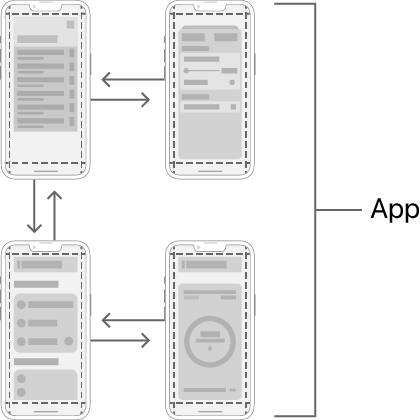 - inactive - Scene이 보이긴하나, 시스템과 유저의 상호작용이 불가능하다. 예를 들어 멀티태스킹 모드에서 앱의 패널을 다른 패널과 볼 수 있지만 활성 패널은 아니다.